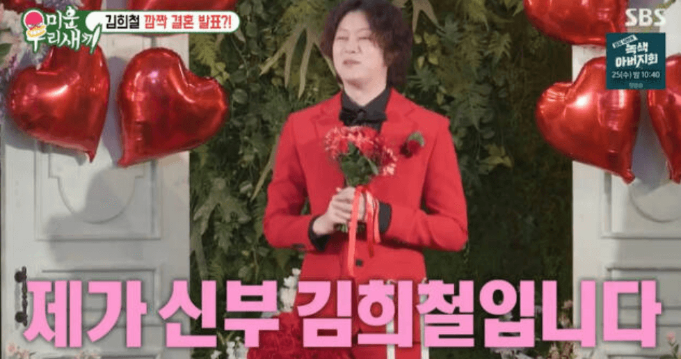 사실 김희철은 지난 22일 방송에서 김종국,탁재훈, 허경환, 최진혁 앞에서 혼자 결혼식을 올리기도 했습니다. 일명 솔로가미 나와의 결혼식으로 자기 자신의 행복을 추구하기 위하여 자신과 결혼하는 나 혼자 결혼식이라고 합니다. 이에 김희철의 어머니는 결혼을 안 하겠다는 생각이냐며 말하기도 하였지만 김희철은 본인은 비혼주의자는 아니며 결혼할 생각이 있다고 밝혔습니다. 다만 스스로를 좀 더 사랑해야 하지 않을까 하는 생각이 들었다며 아픙로 스스로를 더 사랑하고 아껴주겠다고 밝혔습니다. 이날 김희철의 결혼식에는 축사는 김종국, 부케는 최진혁이 받았습니다.